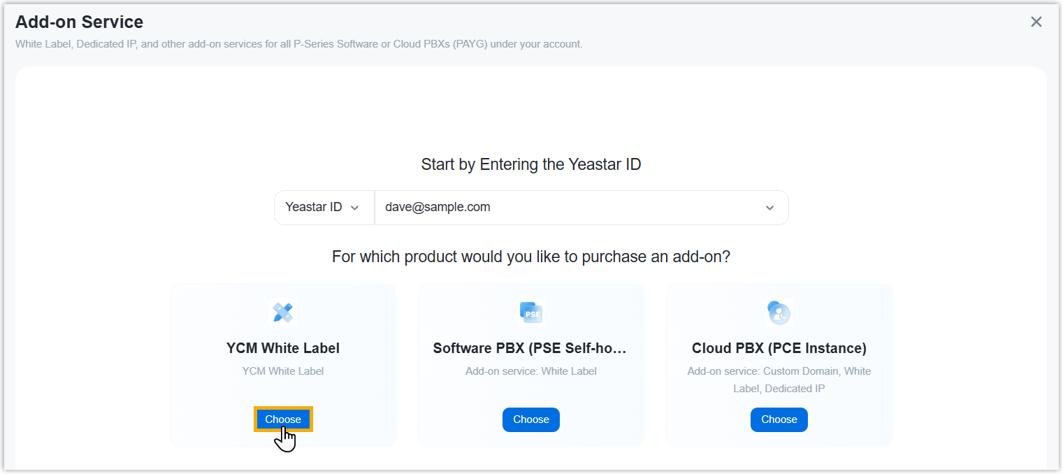 The selected user will have full access to set up and manage portal branding on Yeastar Central Management during the 30-day trial.