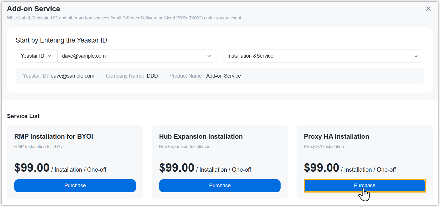 - Log in to Yeastar Partner Portal, go to Products & Purchase.