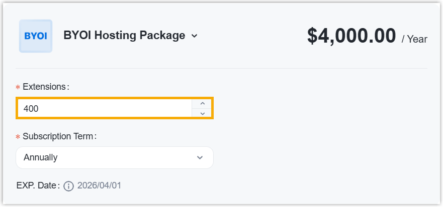 This topic describes how to purchase a commercial BYOI hosting package. To get a trial, contact your account manager.