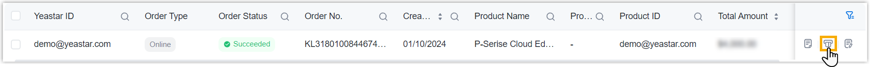 - Log in to Yeastar Partner Portal, go to Products & Purchase.