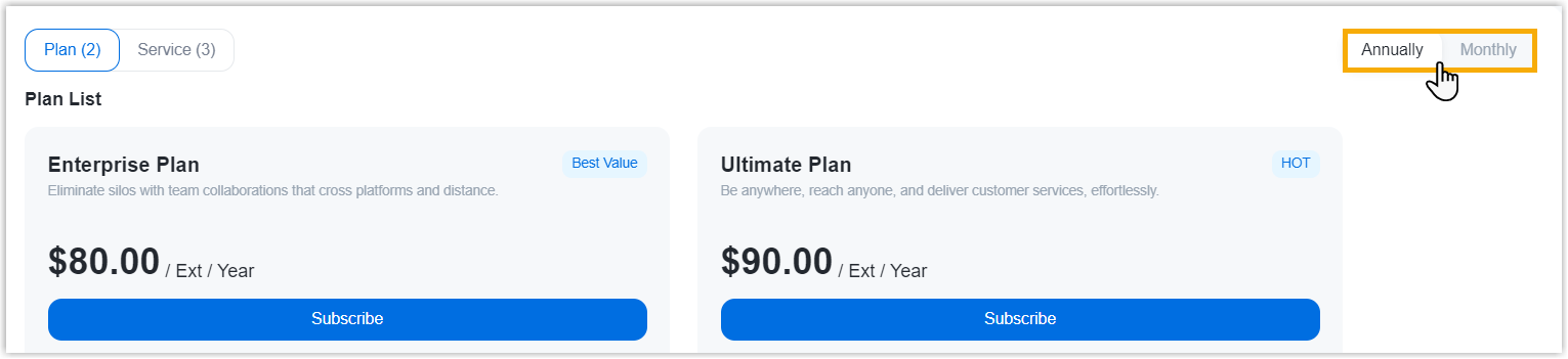 - For Monthly Subscription, only 1-month billing cycle is supported.