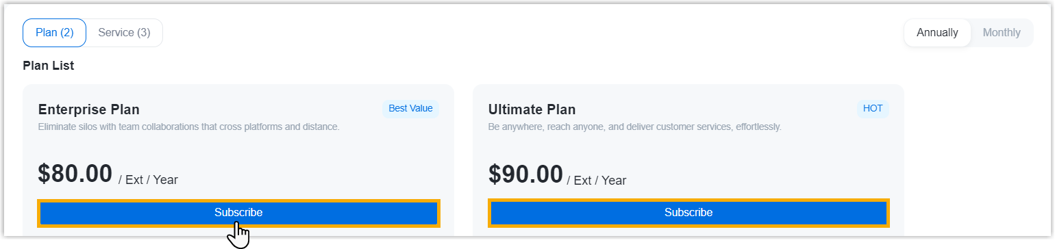 Note:- For Annual Subscription, only 1-year billing cycle is supported.