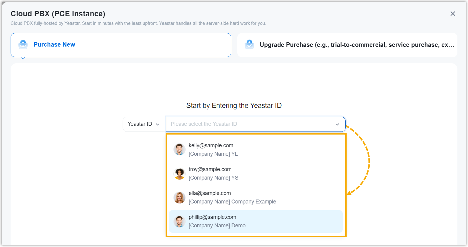 - Search and select the user for whom you want to purchase P-Series Cloud PBX