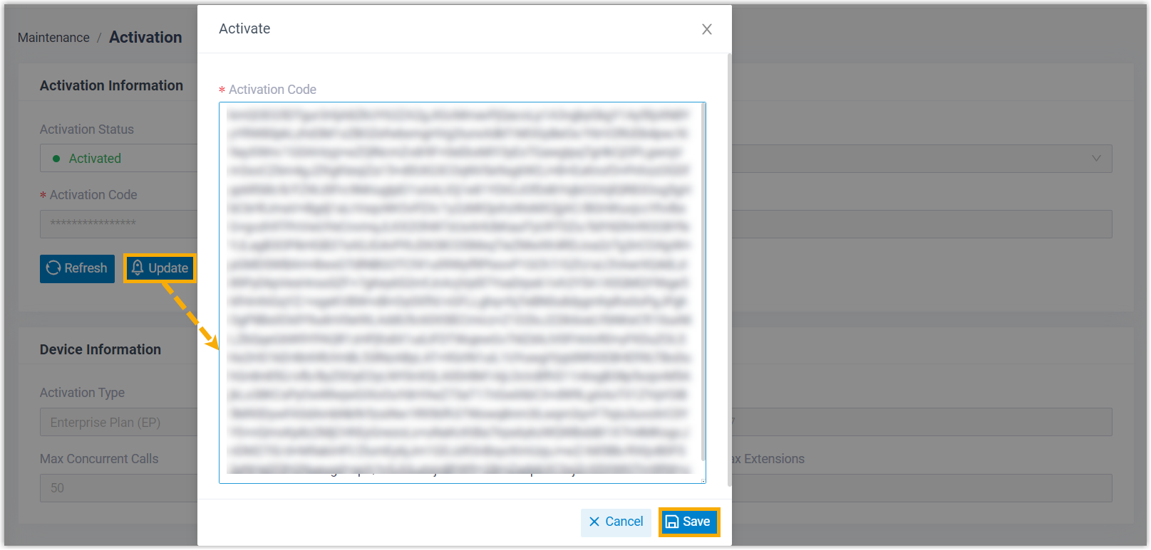 Update, enter the activation