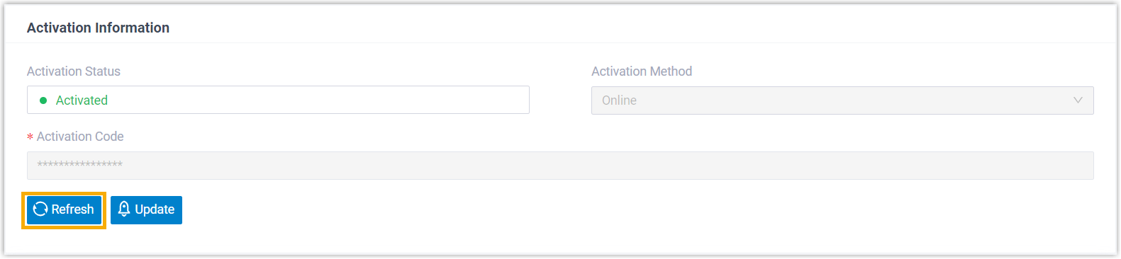 - Update the license according to the activation method: