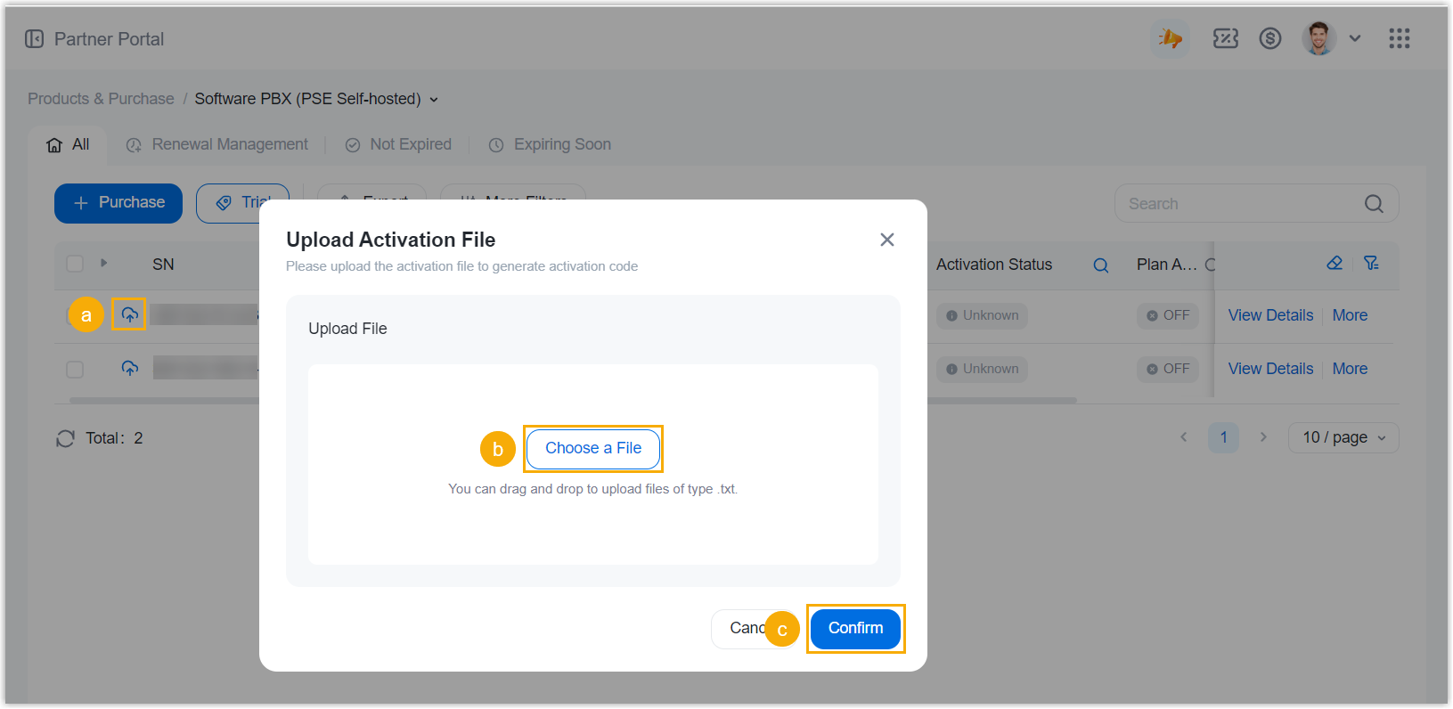 - Q: How to upload an activation request file to Yeastar Partner Portal?