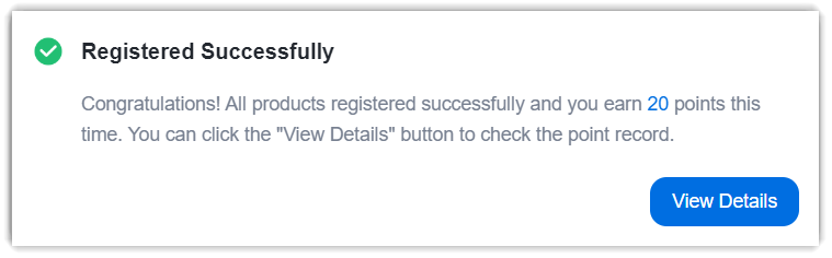 A window pops up, displaying the points that you have earned by registering the product(s).
