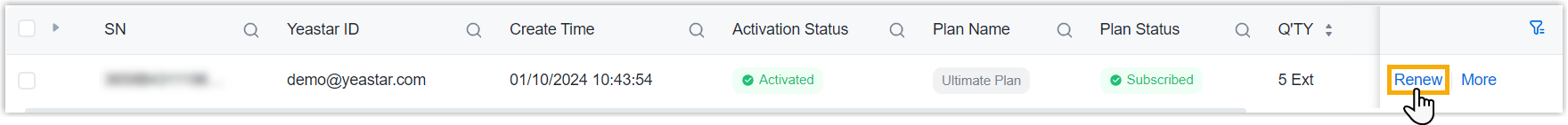 Whenever you receive a request from a customer for renewing a P-Series Cloud PBX Edition, you can proceed on Yeastar Partner Portal.