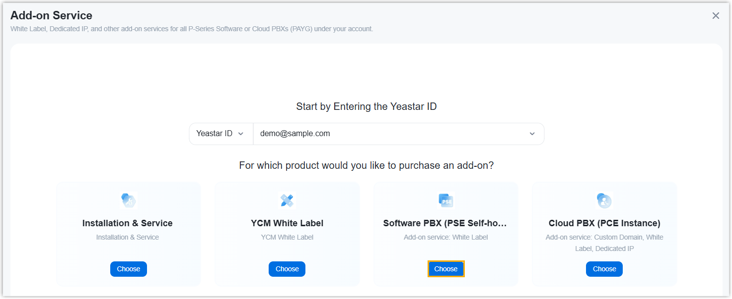 - Log in to Yeastar Partner Portal, go to Products & Purchase.
