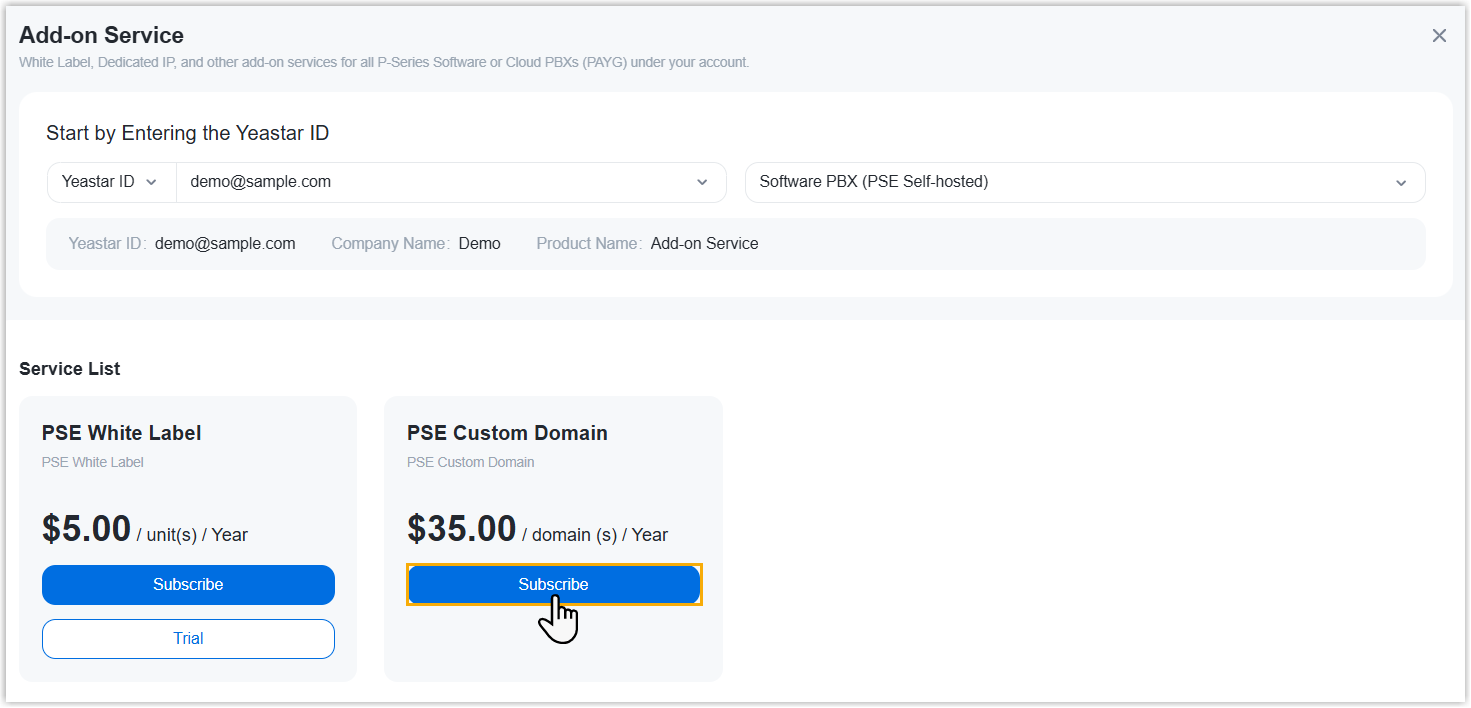 After subscribing to the PSE Custom Domain service, you can configure your own custom FQDN (Fully Qualified Domain Name) for your P-Series Software Edition, which allows you to access the PBX via a secure, managed tunnel, eliminating the complexity of public IP setup, NAT, and firewall rules.