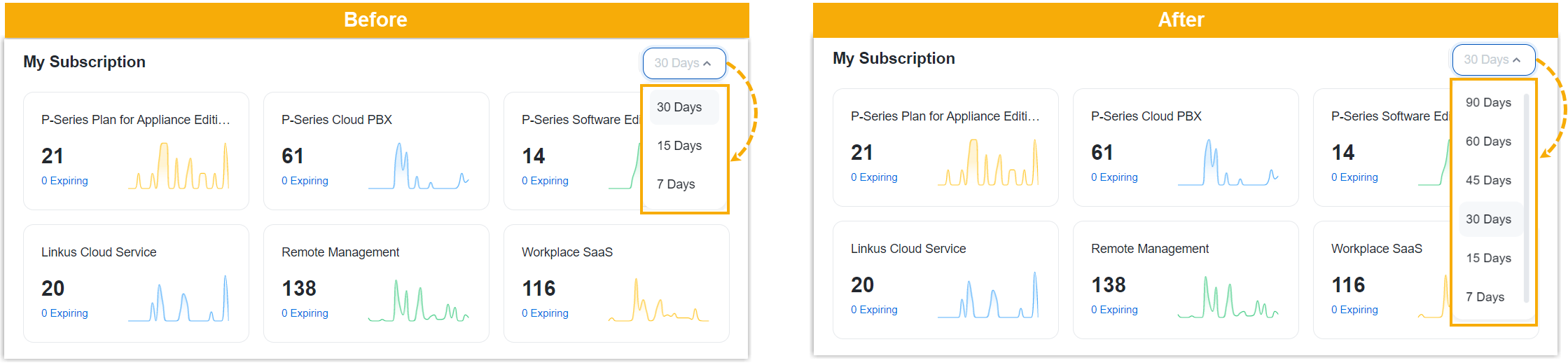 | Updated the description of the time filtering options for My Subscriptions in the Dashboard. | ![]() |