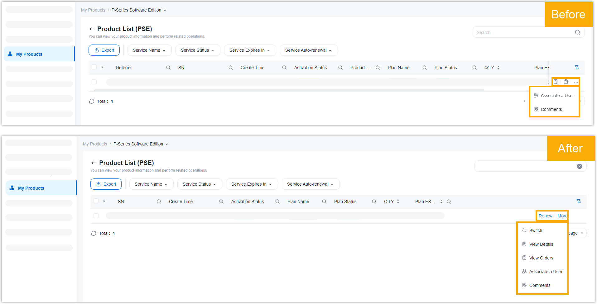 | Updated description | Updated the description for the instructions on purchasing and managing all the Yeastar products, as Purchase entry and My Products entry are merged into Products & Purchase, where you can purchase and manage Yeastar product in a single panel. | Purchase Overview | |