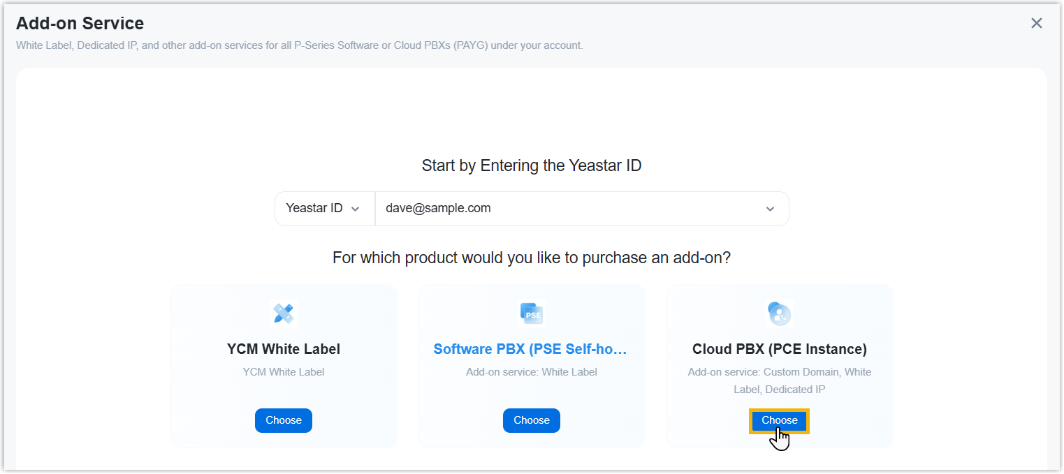 The selected user will have full access to add custom domain(s) on Yeastar Central Management.