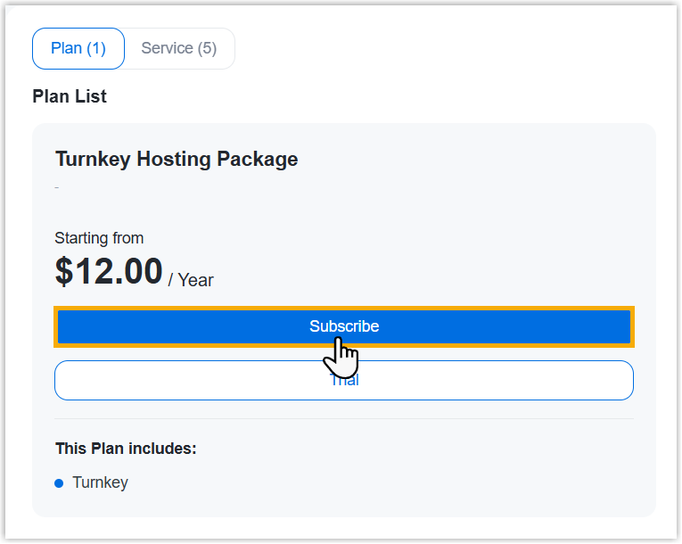 Subscribe of Turnkey Hosting