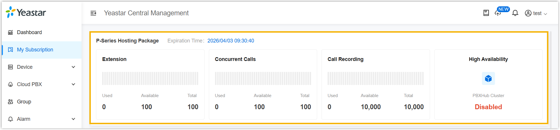 - The hosting package is synchronized to your Yeastar Central Management