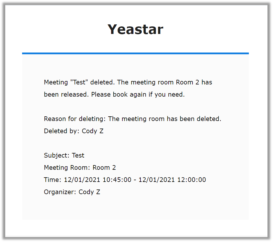 When a meeting room is no longer available, you can delete it to avoid the hassle of canceling room bookings.