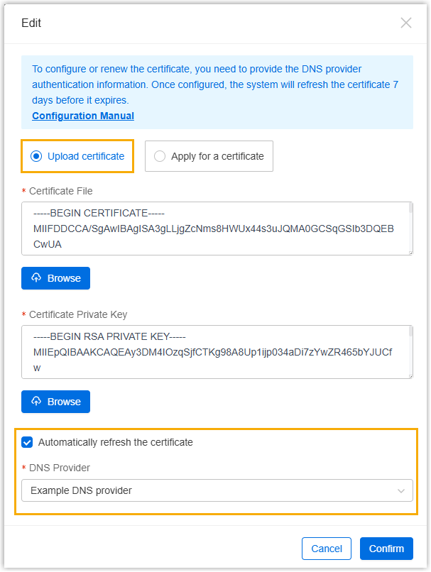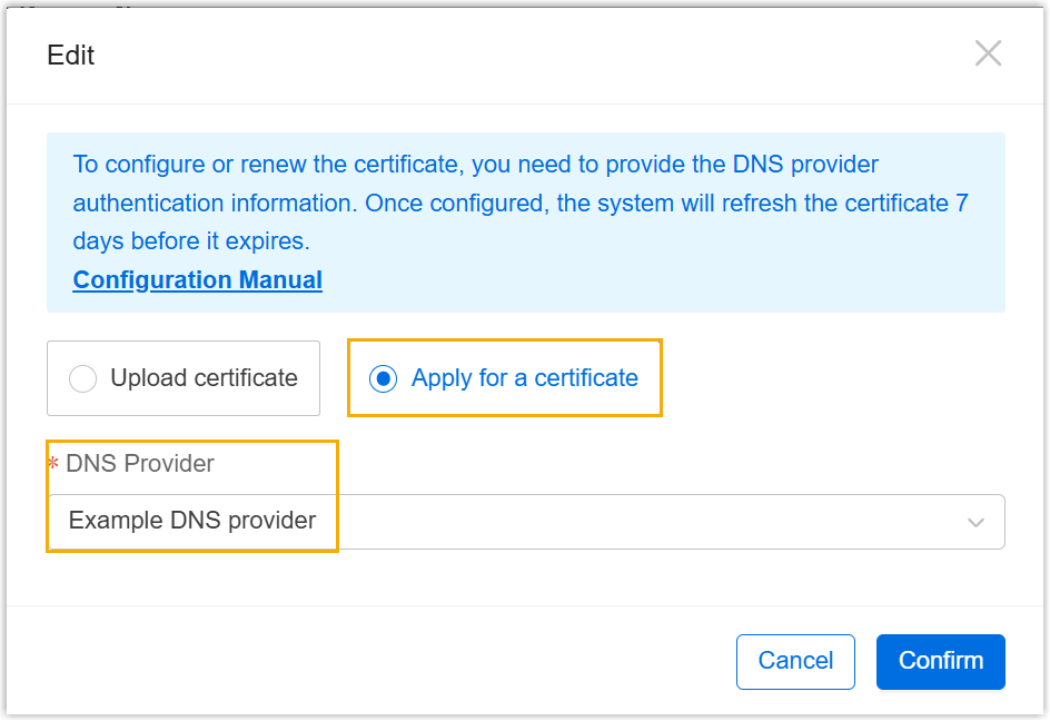 - Added support for adding and managing your DNS provider's information. When you apply for domain certificates on Yeastar Central Management, or enable auto-refresh for domain certificates, the system will handle the certifications using your DNS provider. For more information, see Add a DNS Provider.