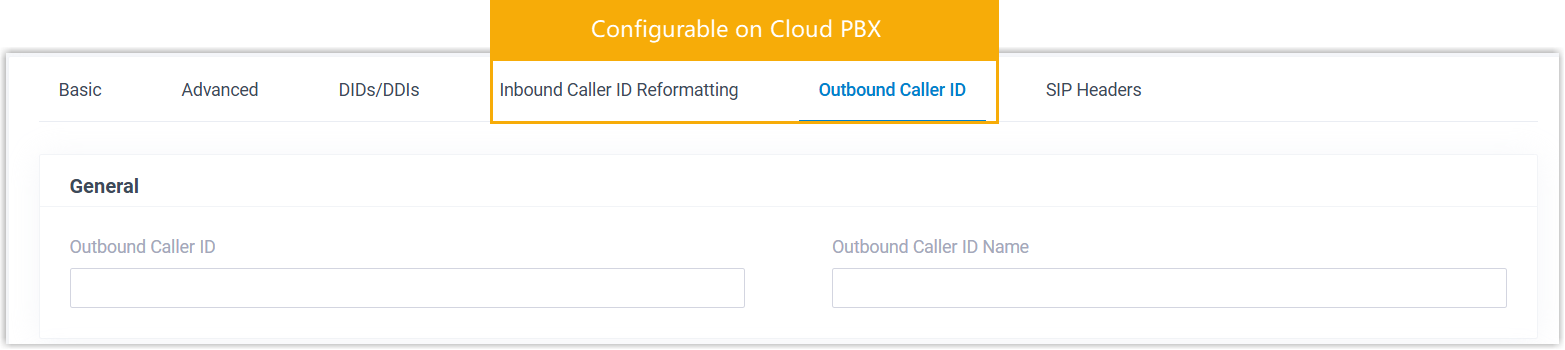 • Trunk settings managed centrally through Yeastar Central Management can NOT be modified on PBX. However, PBX administrators can configure the Inbound Caller ID Reformatting and Outbound Caller ID settings for the shared trunk.