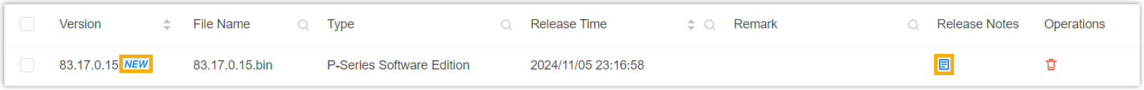 To upgrade the remotely connected P-Series Appliance/Software Edition to a new firmware on Yeastar Central Management, see Upgrade Firmware of P-Series Appliance/Software Edition or Schedule an Automated Upgrade Task.
