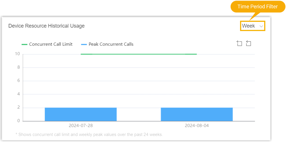 | Peak Concurrent Calls | Show the maximum number of concurrent calls in the selected period. |