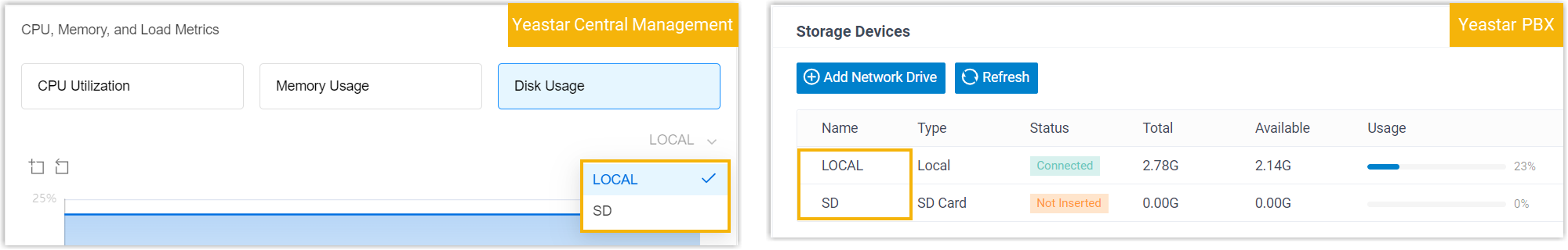 Yeastar Central Management allows you to monitor the system resources of a remotely connected P-Series PBX system (Appliance Edition or Software Edition) through a monitoring window. This helps you track and analyze the PBX system performance and promptly detect and resolve issues.