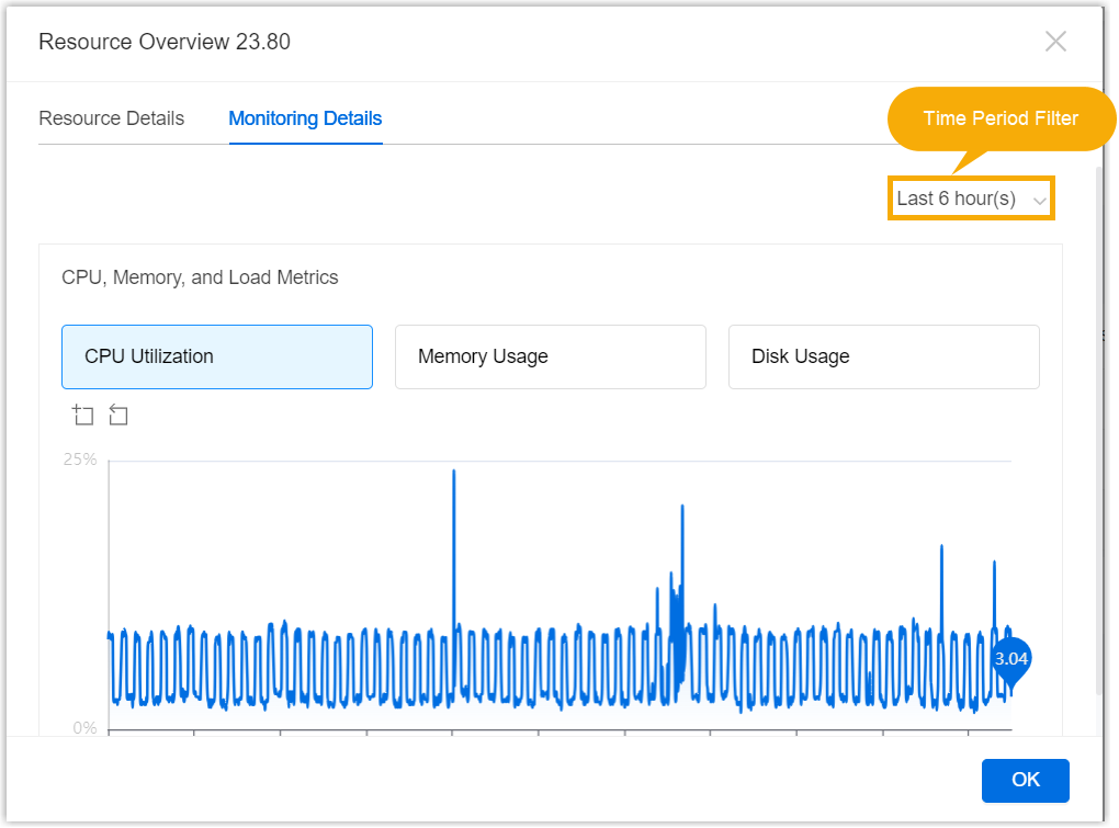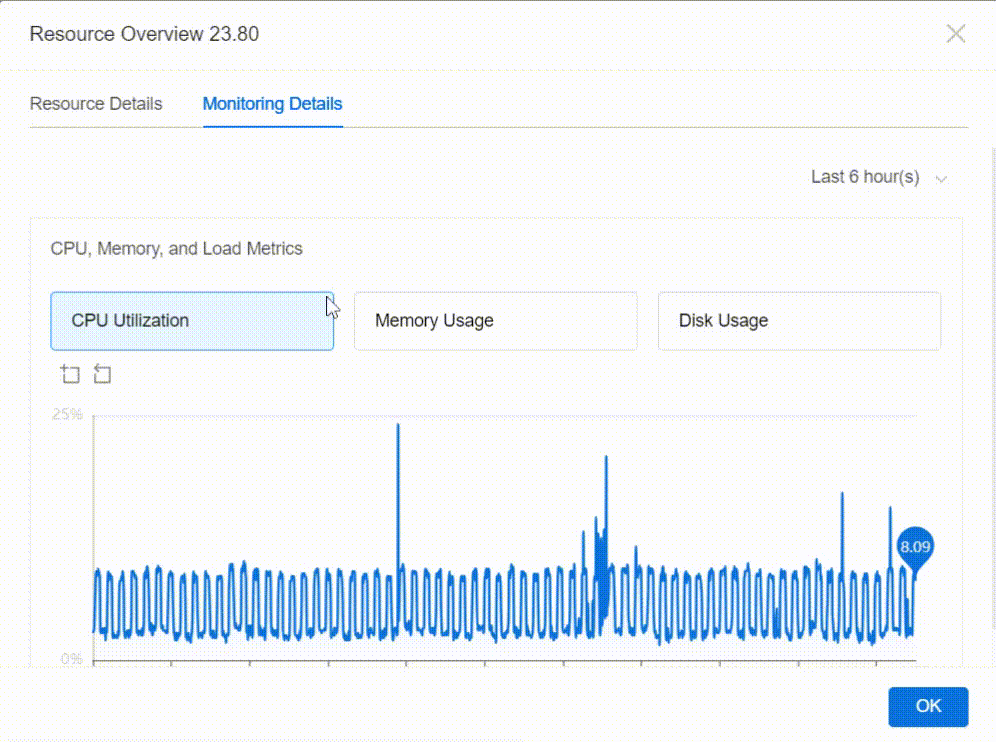 | CPU Utilization | Show the percentage of the CPU capacity utilization within the selected period. |
