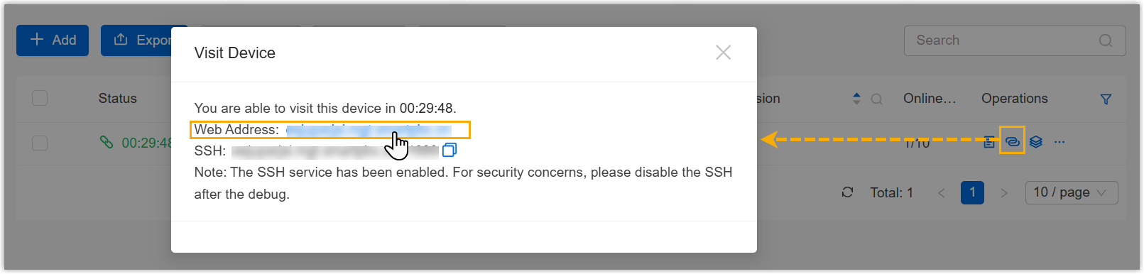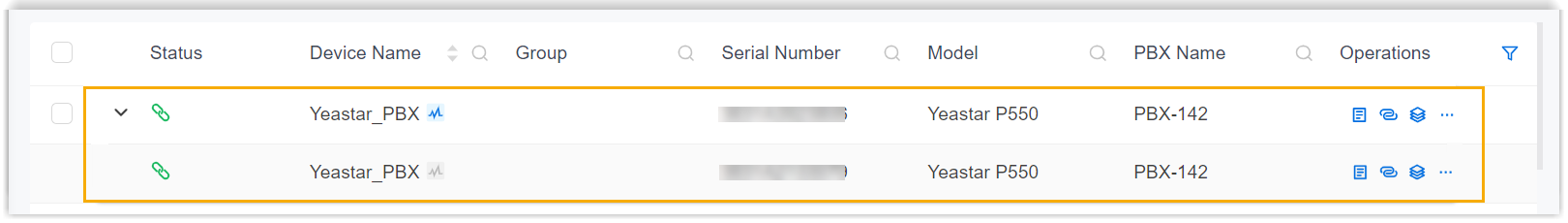 .Note: If the PBX device has enabled Hot Standby feature, both the Primary Server and Secondary Server will be added to the device list with a status indicator of Active (