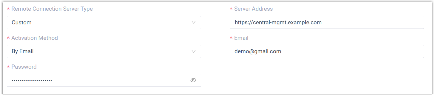 - Remote Connection Server Type: Select Custom.