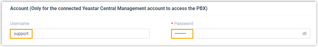 - Server Address: Enter the IP address or domain of your Yeastar Central Management.