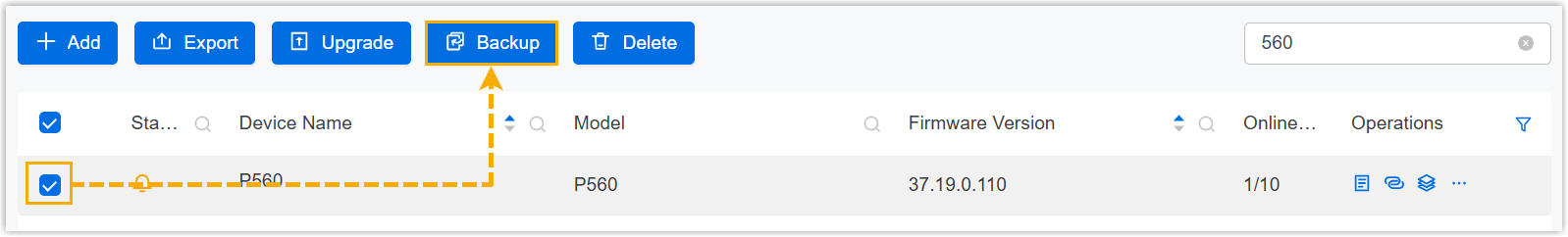 Backup.Note: To backup multiple PBXs at the same time, you need to select the devices of the same product model.