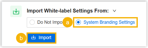 - In the Import White-label Settings From drop-down list, select System Branding Settings.