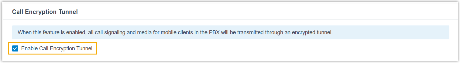Note: To use the encrypted tunnel, the "Call Encryption Tunnel"