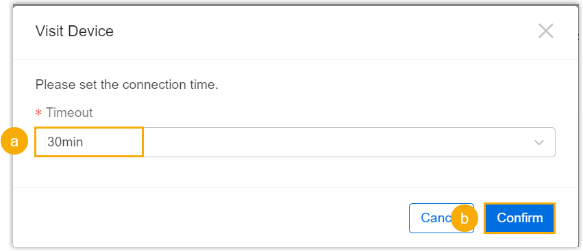 beside a desired device. - In the pop-up window, set the timeout, then click