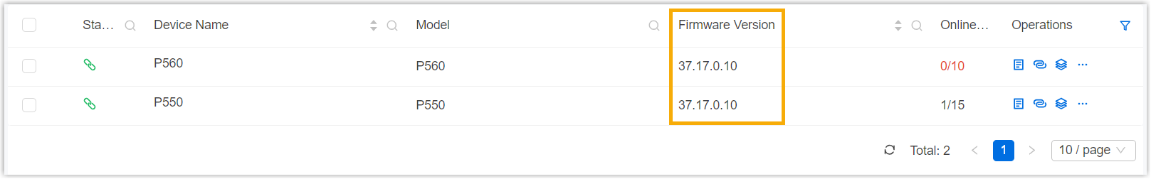 Firmware Version column beside