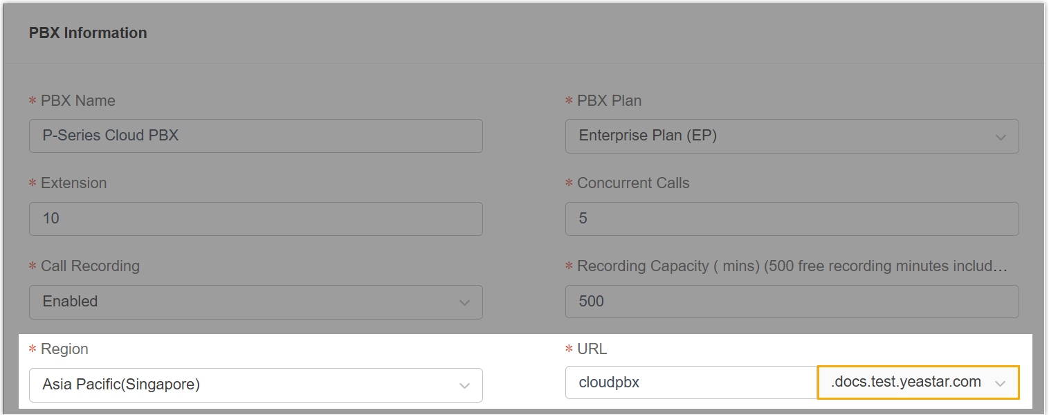 - When creating a P-Series Cloud PBX in the region on , the SBC Server domain name will be the suffix of the PBX