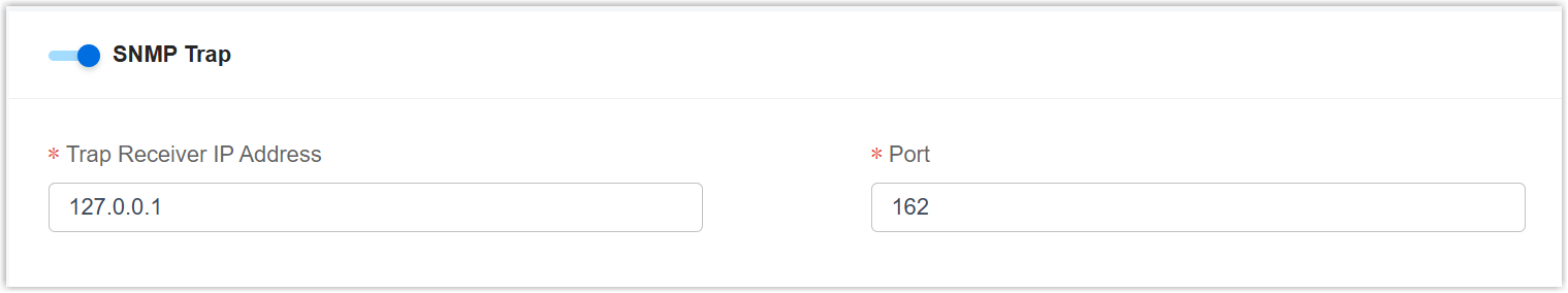 the port to which the SNMP traps will be sent.Note: If you use FRP tunneling to forward traps, set the SNMP Trap Receiver IP address to