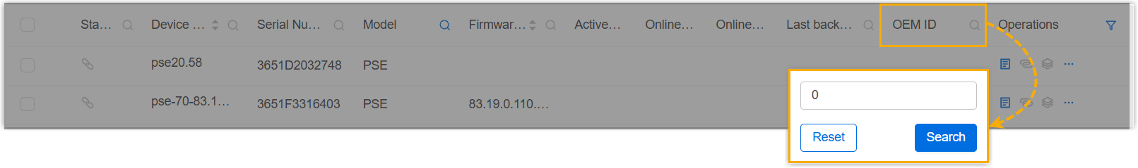 The OEM ID column appears, displaying the OEM ID of each PBX.