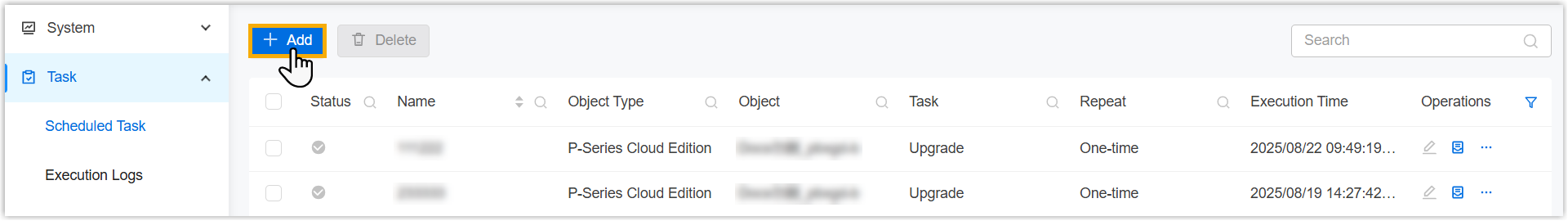 1. Log in to Yeastar Central Management, access the configuration page for upgrade task in either of the following ways.