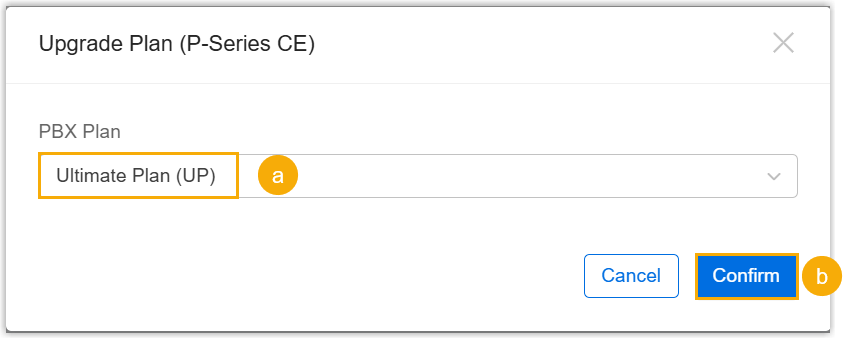 - In the PBX Plan drop-down list, select Ultimate Plan (UP).