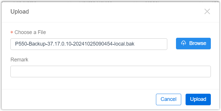 Upload a Backup File of P-Series Appliance/Software Edition
