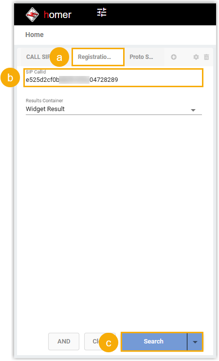 - Optional: In the SIP Callid field, enter the ID of the registration signaling session.