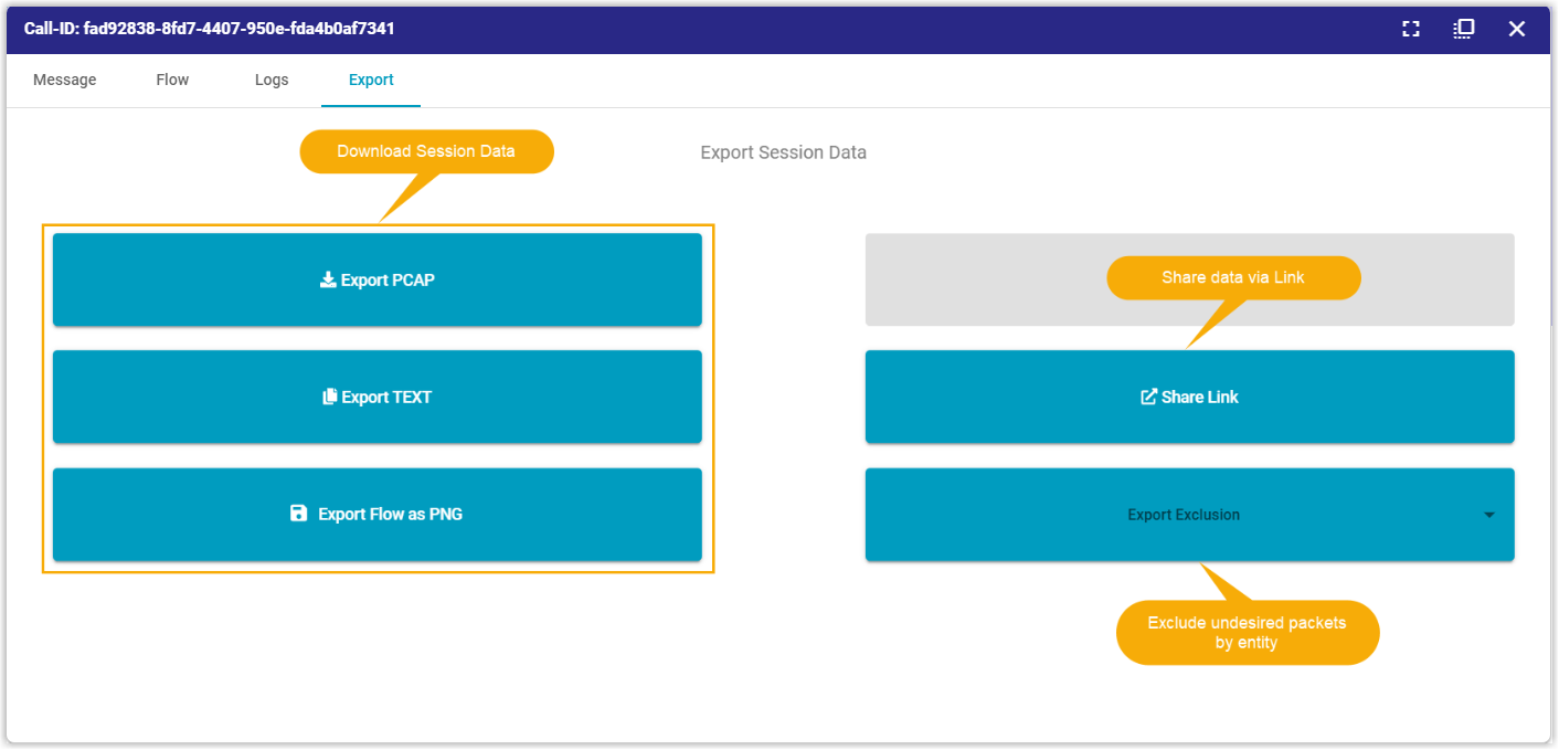 format:Tip: Use Export Exclusion to filter out traffic from specified entities.