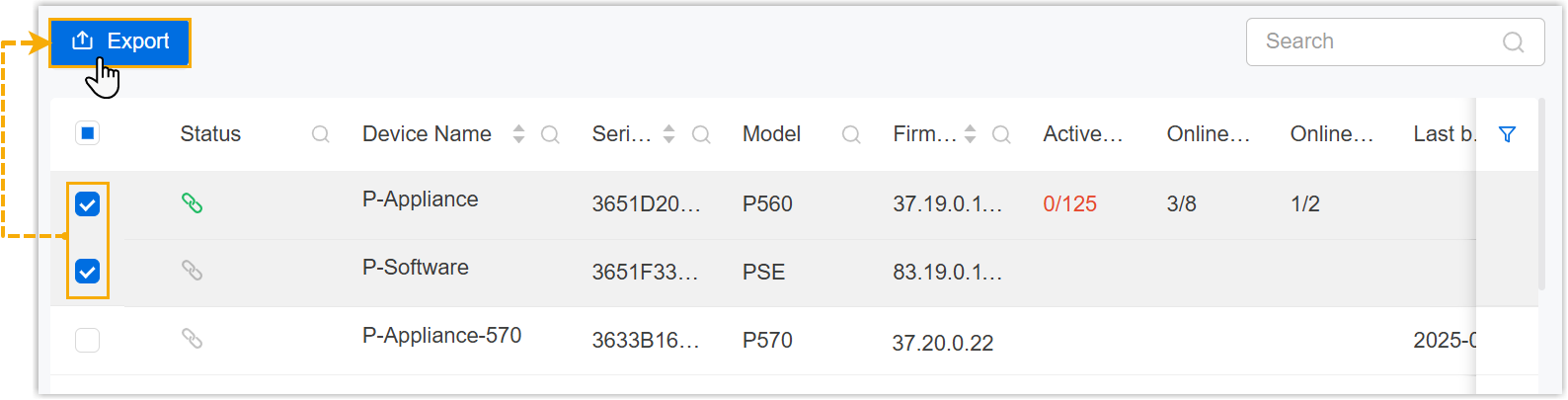 An XLSX file containing the information of the selected devices is downloaded to your computer.