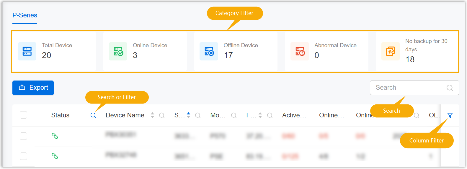 You can view the devices that your subordinate users (hosting users and resellers) have added to Yeastar Central Management. This topic describes how to view these users' devices.