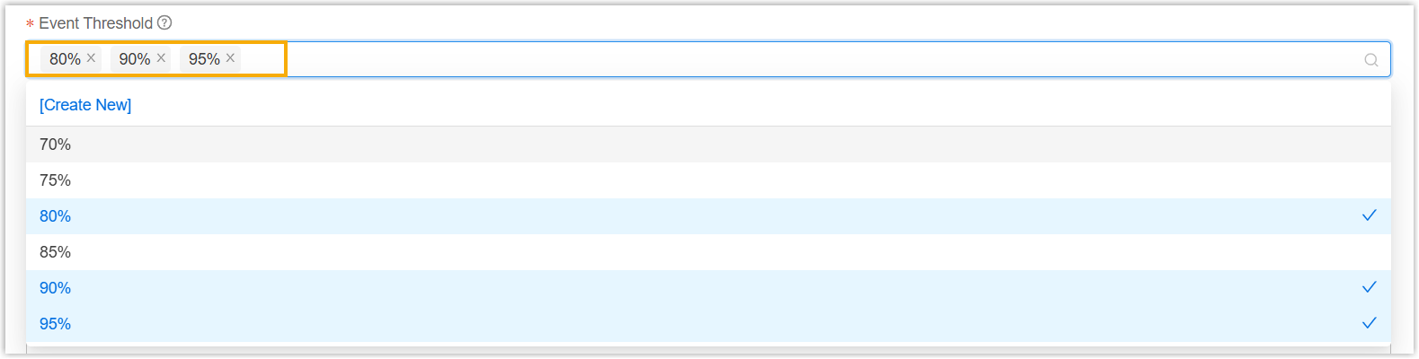 - If your desired value is not listed, click Create New to add a custom threshold.