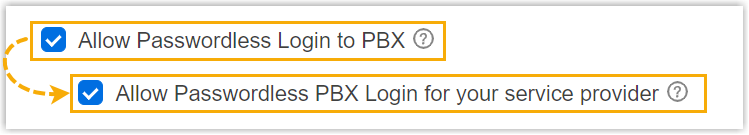Note: To implement passwordless login to the Cloud PBX, the 'Passwordless Login' feature on the Cloud PBX must also be enabled (Path: ).Allow Provisioning via Template To allow the PBX to be provisioned via a template, enable the option, then select a template from the Provisioning Template drop-down list as needed.