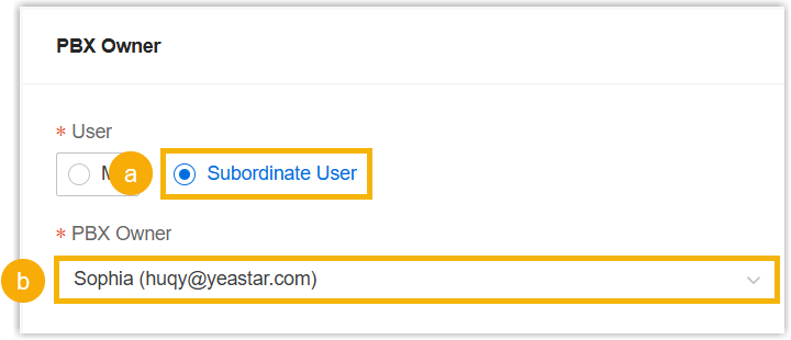 - In the PBX Owner section, do as follows.