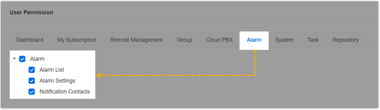 The reseller can only access and manage the selected features when he or she logs in to Yeastar Central Management.
