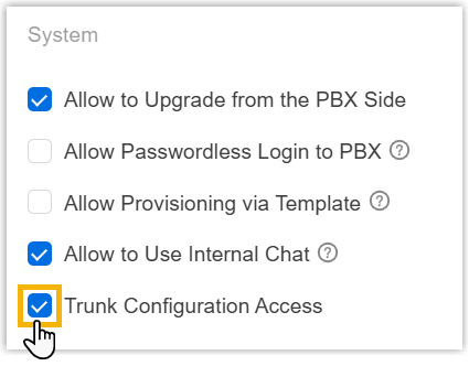Enable or Disable Trunk Configuration Access for a P-Series Cloud PBX