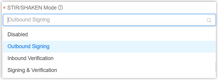 - In the STIR/SHAKEN Mode drop-down list, select either of